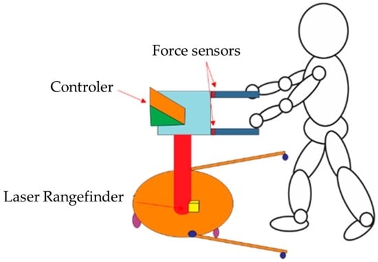 - Yan, Q.; Xu, W.; Huang, J.; Cao, S. Laser and force sensors based human motion intent estimation algorithm for walking-aid robot. In Proceedings of the 2015 IEEE International Conference on Cyber Technology in Automation, Control, and Intelligent Systems, Shenyang, China, 8–12 June 2015; pp. 1858–1863.