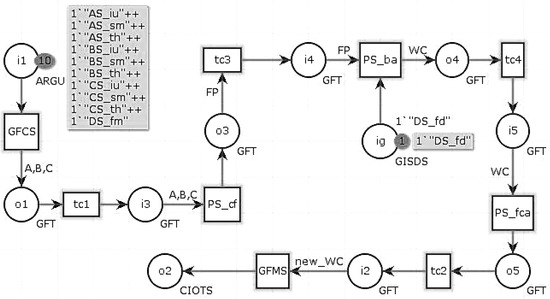- The model established by this modeling method is evaluable. CPN has been extensively studied and there has been many reliable modeling and analysis tools for CPN. CPN model can simulate all kinds of dynamic state, analyze the accessibility, fairness and boundedness properties, and is very conducive to the test and application of the model. The model established by this paper can be verified by CPN tools well.