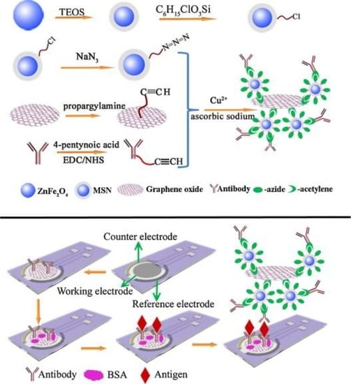- Ge, S.; Sun, M.; Liu, W.; Li, S.; Wang, X.; Chu, C.; Yan, M.; Yu, J. Disposable electrochemical immunosensor based on peroxidase-likemagnetic silica–graphene oxide composites for detection of cancer antigen 153. Sens. Actuators B Chem. 2014, 192, 317–326. [Google Scholar] [CrossRef]