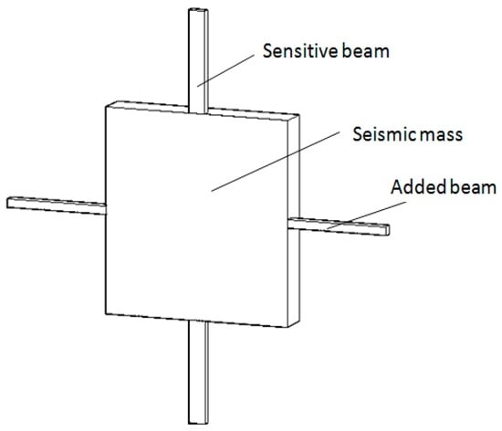 To overcome defects of these structures, a structure with two sensitive beams and two added beams were designed, as shown in Figure 1. The seismic mass is suspended by the two sensitive beams and the two added beams. The length of the sensitive beams is shorter than that of the added beams while the width is larger. In addition, the thickness of both beams is the same.
