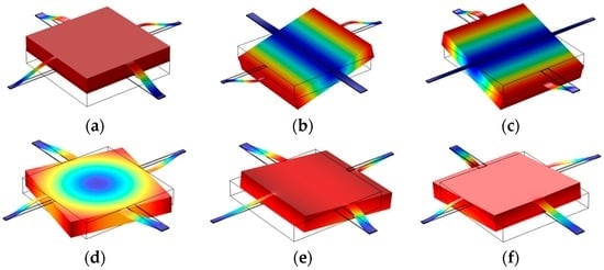 - Yang, Z.; Wang, Q.M.; Smolinski, P.; Ynag, H. Static Analysis of Thin Film Piezoelectric Micro-Accelerometer Using Analytical and Finite Element Modeling. In Proceedings of the ASME 2003 International Mechanical Engineering Congress and Exposition, Washington, DC, USA, 15–21 November 2003; American Society of Mechanical Engineers: New York, NY, USA, 2003; pp. 217–224. [Google Scholar]