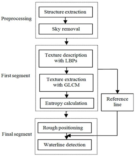 In this paper, we propose an efficient waterline detection method based on structure extraction and texture analysis with respect to optical images and present a practical application to a USV system for validation. Our algorithm can be divided into three parts: image preprocessing, the first segmentation, and the final segmentation. In the following, we will introduce each of these procedures in detail.