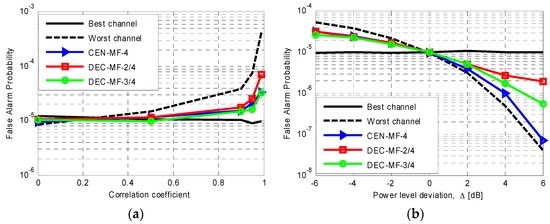 Figure 7a reports the detection results obtained with a decentralized detection scheme based on a 2-out-of-4 strategy (DEC-MF-2/4) which was verified to be a quite robust and effective solution among the possible decentralized strategies.