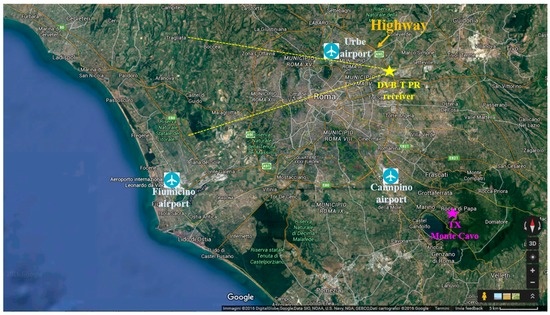 2]. A receiving system is appropriately designed to collect the echoes reflected from targets and sited to provide coverage of specific areas. Since there is no need to build and to operate dedicated transmitter equipment, PR sensors offer a number of advantages such as contained costs of realization and maintenance, possible covert operation, and low vulnerability to electronic countermeasures. Moreover, they do not generate additional electromagnetic pollution and have a limited impact on the landscape thanks to their reduced size, therefore they are usually referred to as “green systems” and can be employed in areas where conventional radars could not be deployed (e.g., in close proximity to residential areas).