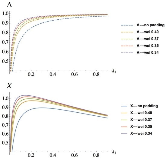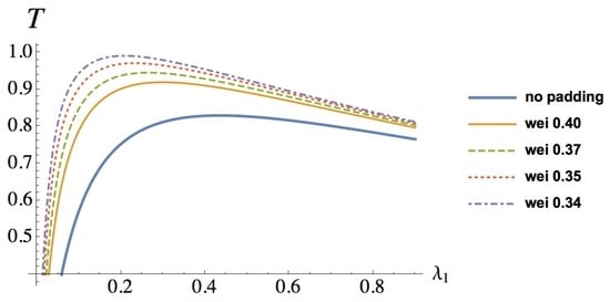 Figure 6 shows the system performance and security measures, i.e., system confidentiality Λ (defined in Equation (2)) and throughput (defined in Equation (3)), changing with the rekeying rate It can be seen that the confidentiality measure monotonically increases with growing rekeying rate because the security improves when the system launches the rekeying process more frequently, as the system is more likely to be brought back to the good state from the timing attack state and the compromised state. While for the throughput measure, at small values of the rekeying rate, it is pretty low, because more time is spent in the compromised state when the throughput is not contributing. After obtaining the maximum throughput, the more often the gateway node triggers the rekeying act, the more often the gateway node denies sensor requests. As a result, the system throughput decreases with the rekeying rate. For a certain value of the rekeying rate , the performance and security of WSNs are both improved when random paddings are interposed.