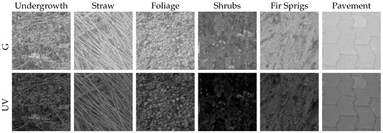 The results of our previous work [19] showed that for global separation techniques, the classification could only be slightly improved using two different color channels, namely UV and green. Additionally, the test of local separation techniques showed that using both UV and green color channels does not improve the classification quality over UV-only classification. Due to the limited range of data collected in the previous study (only suburban and forest skylines), the variety of collected data is increased by adding mineral skylines (stones, sand, earth), as well as a collection of several ground objects (shrubs, fir sprigs, straw) in this study.