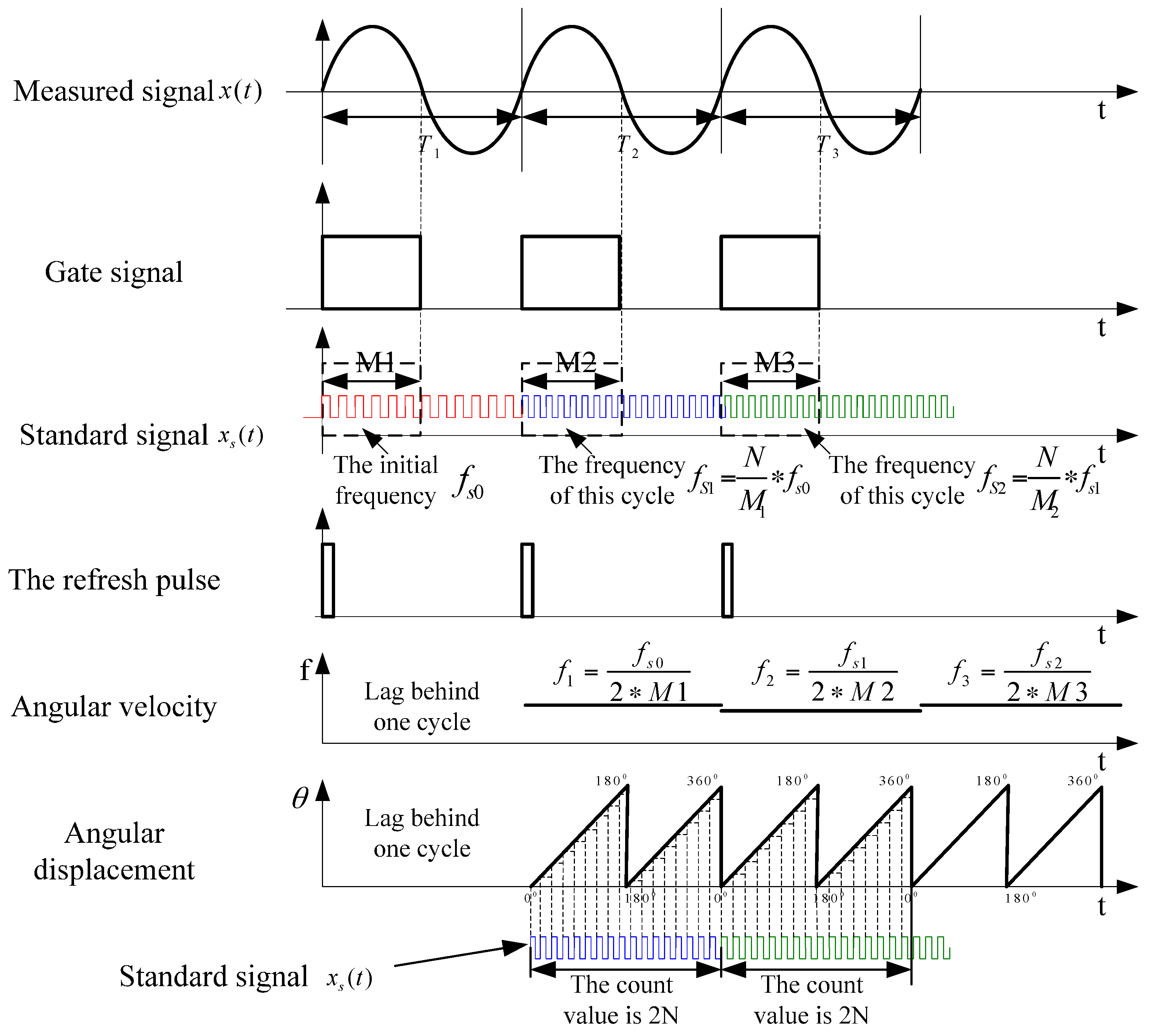 Since the count value of standard signal is M1 under the current cycle, the angular displacement information cannot be effectively output yet. From the second cycle on, the detailed process is as follows: