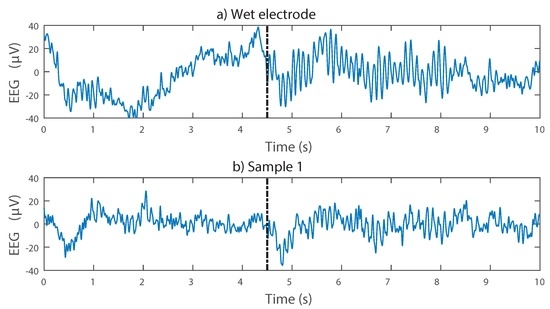 - Nathan, V.; Jafari, R. Reducing the noise level of EEG signal acquisition through reconfiguration of dry contact electrodes. In Proceedings of the 2014 IEEE Biomedical Circuits and Systems Conference (BioCAS), Lausanne, Switzerland, 22–24 October 2014.