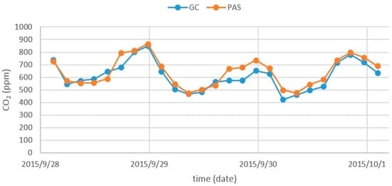 3.3. Comparison of Measurements Obtained with PAS and GC