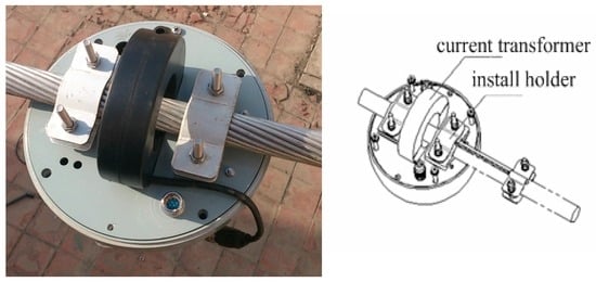 The current transformer is embedded into a ring-type structure whose width is 27 mm, outer diameter is 150 mm and inner diameter is 55 mm. The sensor module can easily be installed and uninstalled, as shown in Figure 8. Through running on site, the wireless sensor module can meet the requirements of HV electrical characteristics and security.