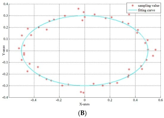 In the experiments, the semi-major axis of elliptical motion ranges from about 0.5 m to about 2 m, and the semi-minor axis ranges from about 0.3 m to about 1.3 m. Figure 17 shows how to get elliptical motion parameters according to a set condition where the length of the semi-major axis is 0.5 m and the length of the semi-minor axis is 0.3 m. Then many different motions were measured by both the designed sensor and the radar meter, and the results are shown in Table 1. It can be seen that the maximum relative error of the semi-major axis is 8.11%, and the maximum relative error of the semi-minor axis is 8.35%.