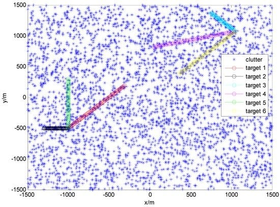 The first is that the computational burden is still too intensive in many actual applications, especially in the case of dense clutters and intensive targets. One possible solution is to discern the measurement originality based on tracking gating [,]. Nevertheless, such a decision still faces mistake risks.
