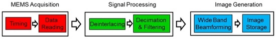 The algorithms implemented in the system, shown in Figure 4, can be divided into three blocks: MEMS acquisition, signal processing, and image generation.