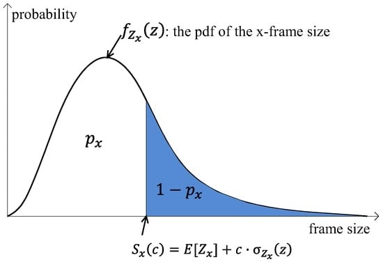 Here, indicates the largest size of the x-frame being able to be wholly transferred in the x-frame interval. is a variable decided by the network operator, and, in this study, it is determined with reference to the average and variance of the frame size distribution of each frame class, which is given by