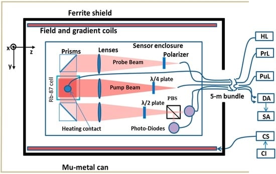 15]. Recently, however, SERF and other sensitive atomic magnetometers have been developed that are compact, flexible, and inexpensive to assemble, especially those based on a fiber-coupled (FC) design with small cells [