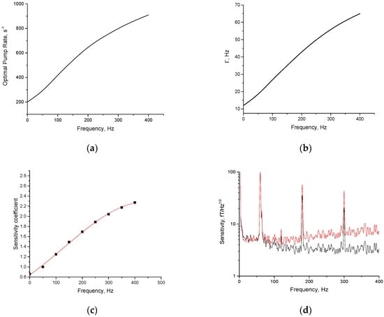 Figure 4b shows the corresponding bandwidth of the magnetometer when the pumping rate is optimized;