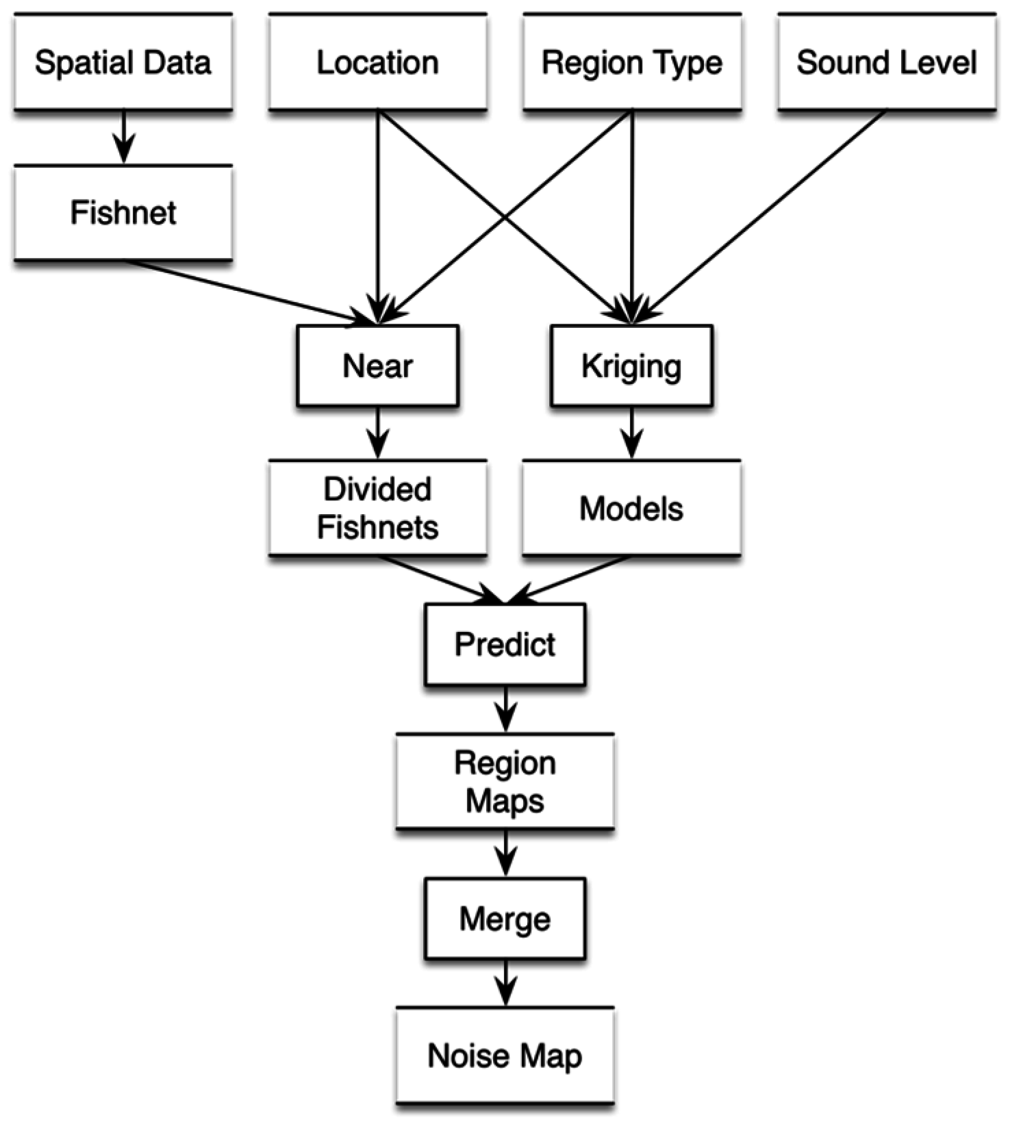 Steps in creating a noise map using the measurement and spatial data.