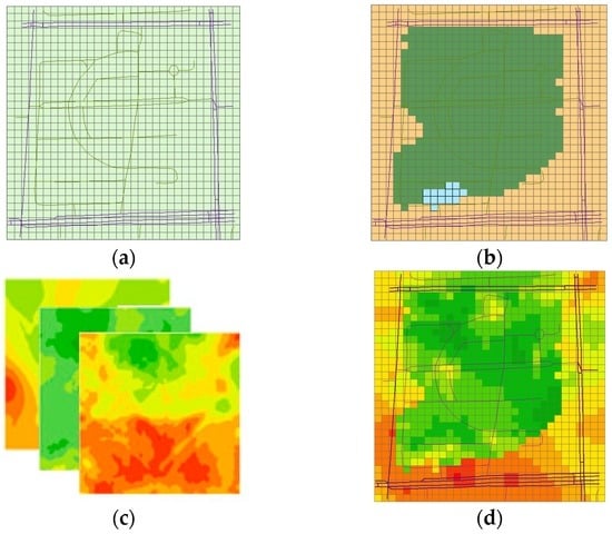 - Combine the noise maps of the different region types to generate the noise map of the whole experimental field. As is shown in Figure 4d.