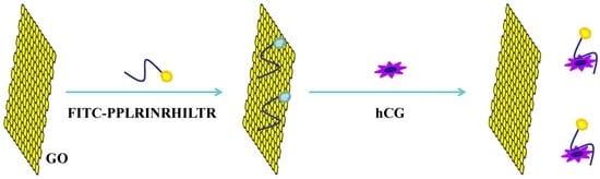 Schematic illustration of the GO-based fluorescent method for hCG detection with a peptide of FITC-PPLRINRHILTR as the probe.