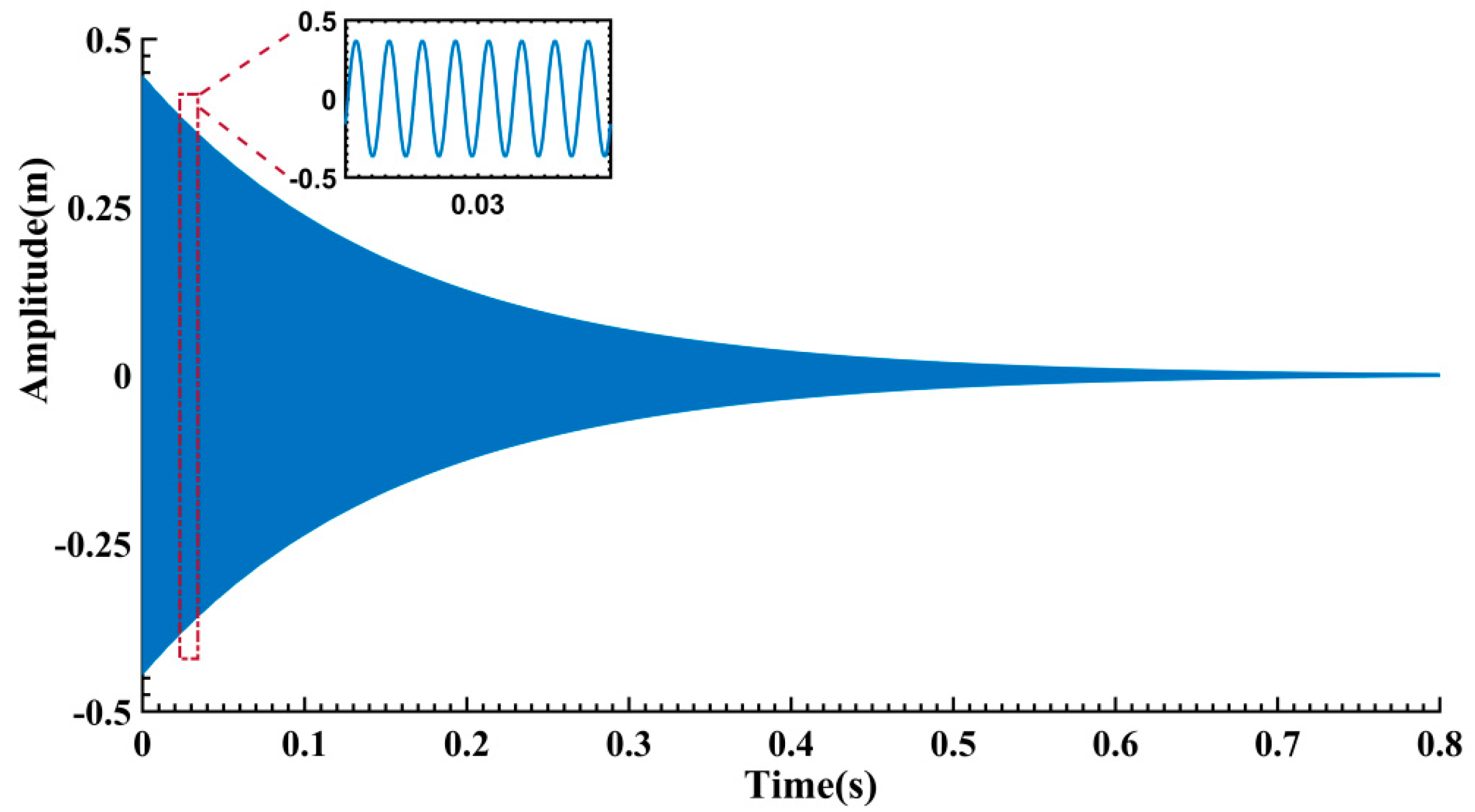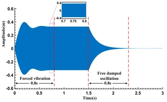 where m, , denote the mass, damping coefficient and stiffness coefficient, respectively. F(t) is the excitation signal. B, are the amplitude and frequency of the sinusoidal excitation signal, respectively. t1 is the duration time of the sinusoidal signal. For t > t1, the excitation is stopped and the system comes into the free damped oscillation state.