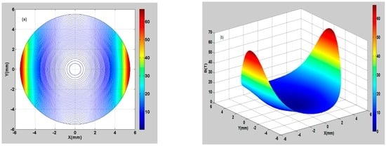 In addition, to study the magnetic field distribution inside the flowtube, this work conducted a numerical calculation on Equation (28), and the results of the numerical calculation were visualized graphically.