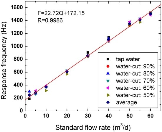 A total sampling time of 180 s was applied at intervals of 0.5 s under each flow condition. Thus, 360 response values were recorded for each flow condition, and the average value was used as the corresponding measurement value.