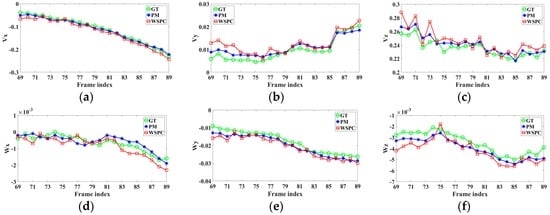 The ego-motion parameters of frame 69 to frame 89 are shown in Figure 7. For most parameters, the subsequent frames generate more accurate results than the former frames due to the tracking strategy. The comparison of the ego-motion estimation error of PM and WSPC for scenario 2 is shown in Table 4.