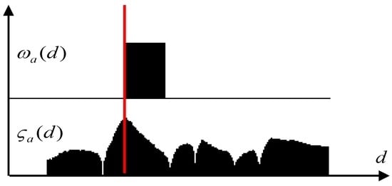 Out of all the values d that have > 0, the one having a maximum is kept as the obstacle position. The process is depicted in Figure 4: on the first row the binary function is shown, and the second row depicts the continuous score function. The red line indicates the choice for the obstacle’s position.