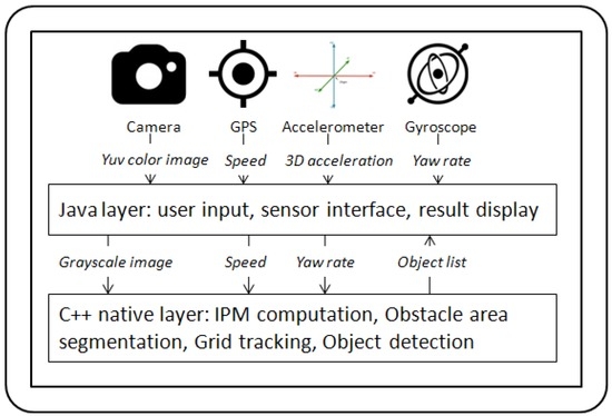 - Itu, R.; Danescu, R. An Efficient Obstacle Awareness Application for Android Mobile Devices. In Proceedings of the IEEE 10th International Conference on Intelligent Computer Communication and Processing (ICCP), Cluj-Napoca, Romania, 4–6 September 2014; pp. 157–163.