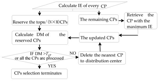 The CP distribution can be regarded as the spatial dispersion of points, which can be measured by the normalized mean distance between CP and the distribution center of CPs. The distribution center of CPs is: