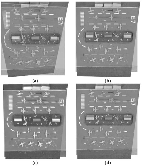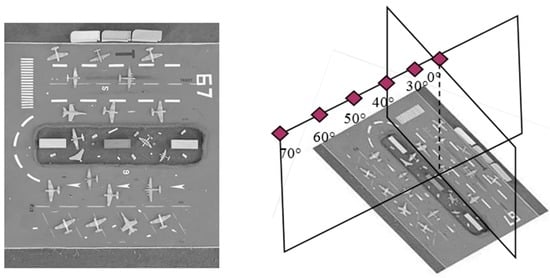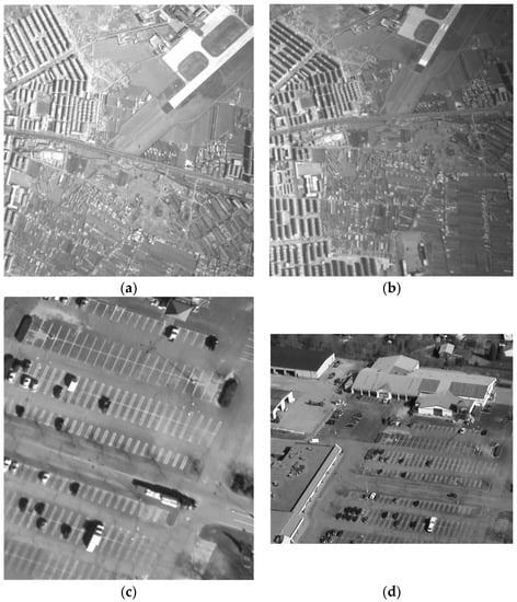 In order to comprehensively illustrate the performance of the proposed method, two groups of datasets are employed. One group is taken from our semi-physical platform by imaging nadir images for the reference image and off-nadir images for distortion images. The viewing angles are from 30° to 70° for an interval of 10° as shown in
