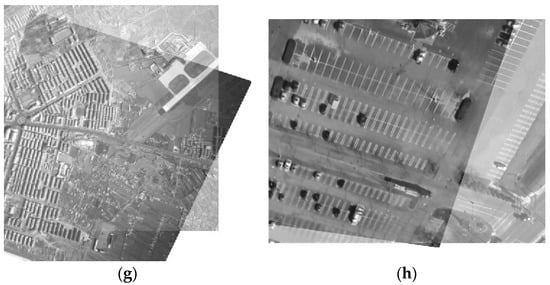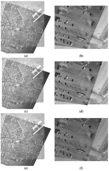 Figure 12 shows the mosaic results of the aerial images 1 and 2 by different correction methods.