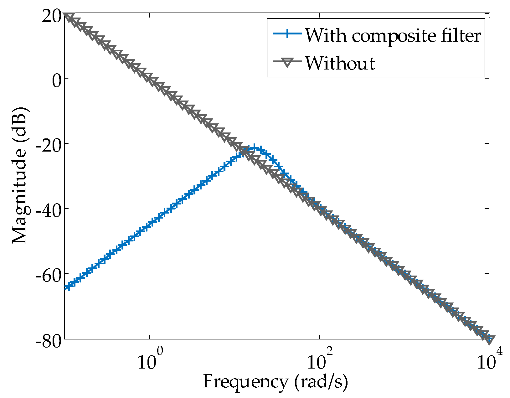 Comparison of the frequency responses of the traditional integration method and composite filter.
