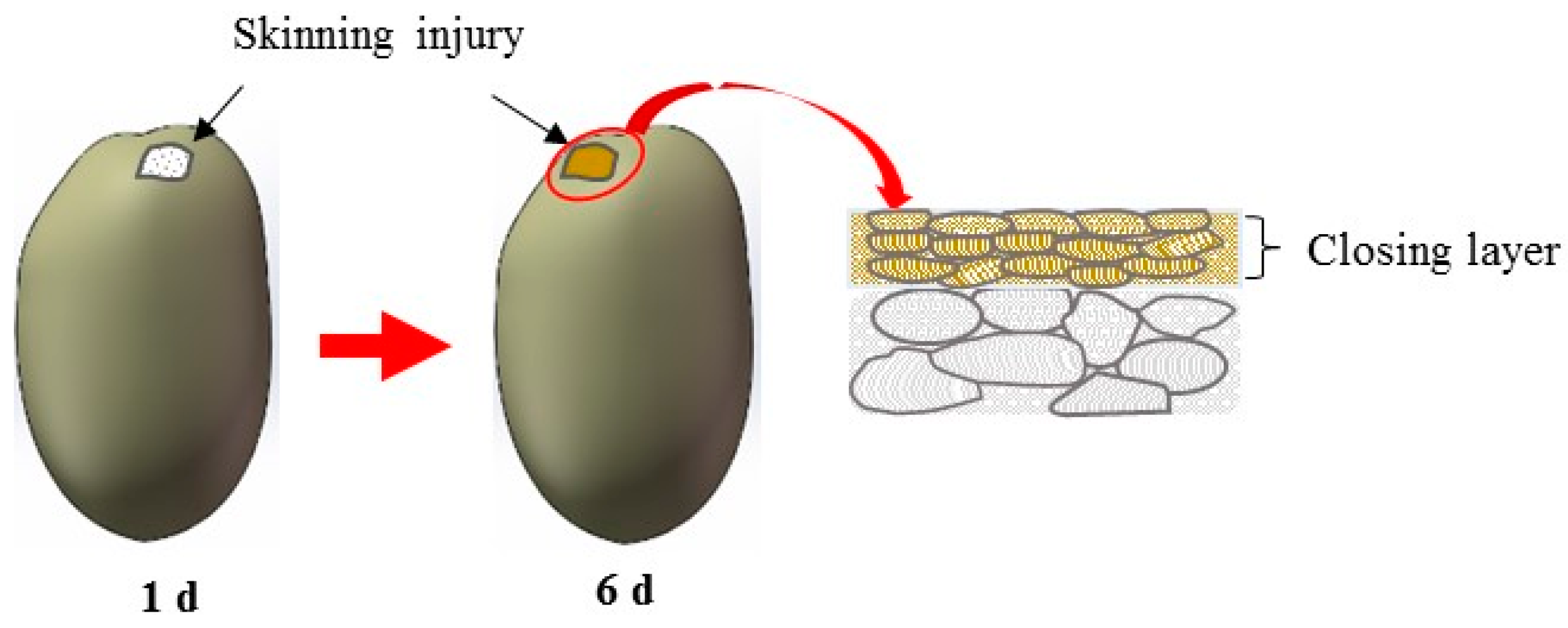 4. Lulai, E.C. The canon of potato science: 43. Skin-set and wound-healing/suberization. Potato Res. 2007, 50, 387–390. [Google Scholar] [CrossRef]