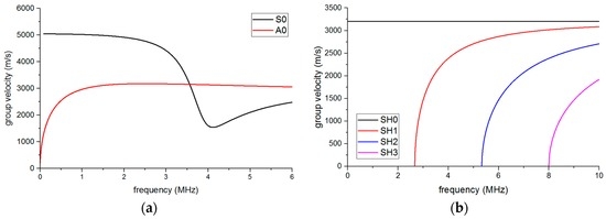 The dispersion curves of group velocity in the waveguide: (a) lamb wave and (b) shear horizontaL(SH) wave.