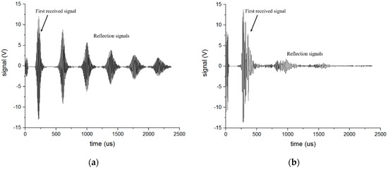 The received signal in the free waveguide: (a) S0-wave; (b) SH0-wave.