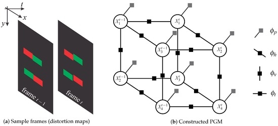 Illustration of the probabilistic graphical model (PGM)-based modeling procedure: (a) simplified distortion map; (b) corresponding PGM.