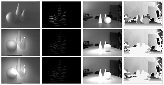 - Horn, E.; Kiryati, N. Toward optimal structured light patterns. Image Vision Comput. 1999, 17, 87–97. [Google Scholar] [CrossRef]