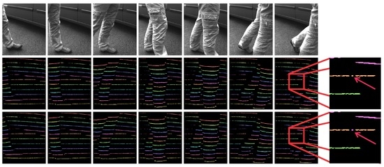 Finally, temporal neighbors are defined as pixel segments belonging to detected patterns recorded at two consecutive time instances, and t, that share at least one non-zero pixel at the same spatial coordinates. This definition requires no tracking of the pixel segments over time and is extremely simple to implement. On the right side of Figure 6, only pixel segments a and c represent temporal neighbors, whereas all other segment pairs do not. Temporal neighbors are included in the graphical model to exploit additional temporal information when labeling the light planes of the projected pattern. As shown in the experimental section, the addition of temporal neighbors contributes to the accuracy of the labeling procedure.