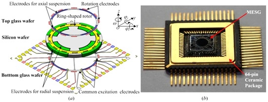 - Han, F.; Liu, Y.; Wang, L.; Ma, G. Micromachined electrostatically suspended gyroscope with a spinning ring-shaped rotor. J. Micromech. Microeng. 2012, 22, 105032. [Google Scholar] [CrossRef]