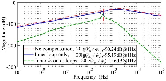 Benefitting from the inner-loop and outer-loop compensators, the output voltages of the two sensing axes separate ideally from each other, which is derived as in Equation (10).