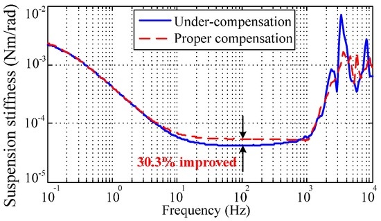 Experimental results of the suspension stiffness, which is improved by 30.3% with proper compensation.