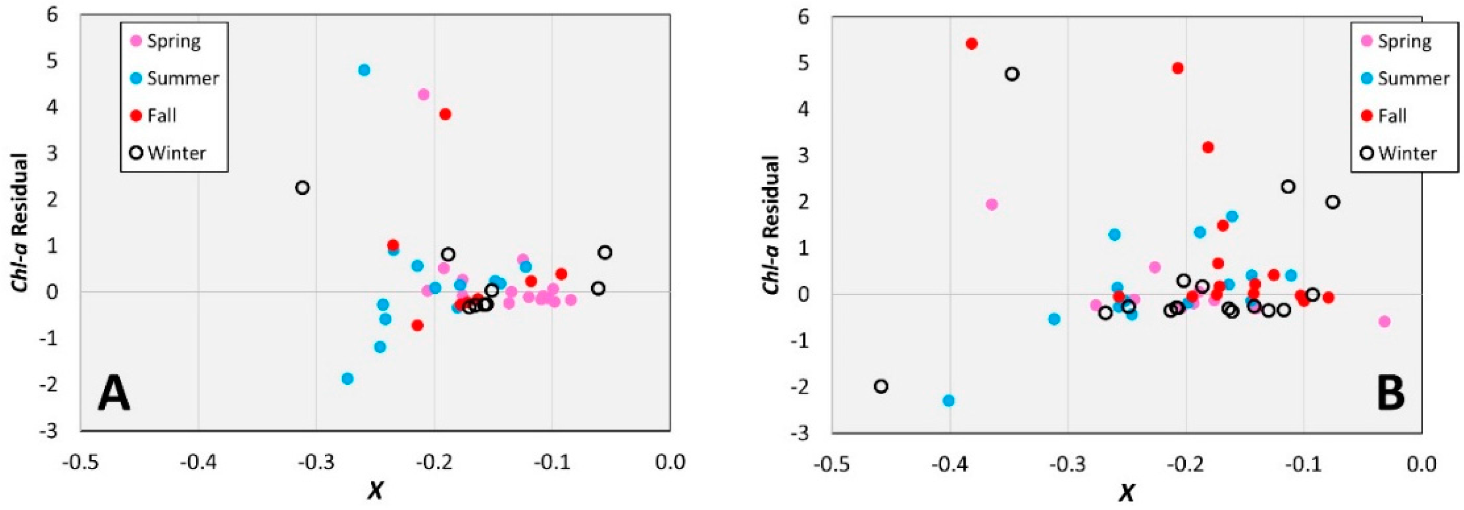 - Werdell, J.P.; Bailey, S.W.; Franz, B.A.; Harding, L.W.; Feldman, G.C.; McClain, C.R. Regional and seasonal variability of chlorophyll-a in Chesapeake Bay as observed by SeaWiFS and MODIS-aqua. Remote Sens. Environ. 2009, 113, 1319–1330. [Google Scholar] [CrossRef]