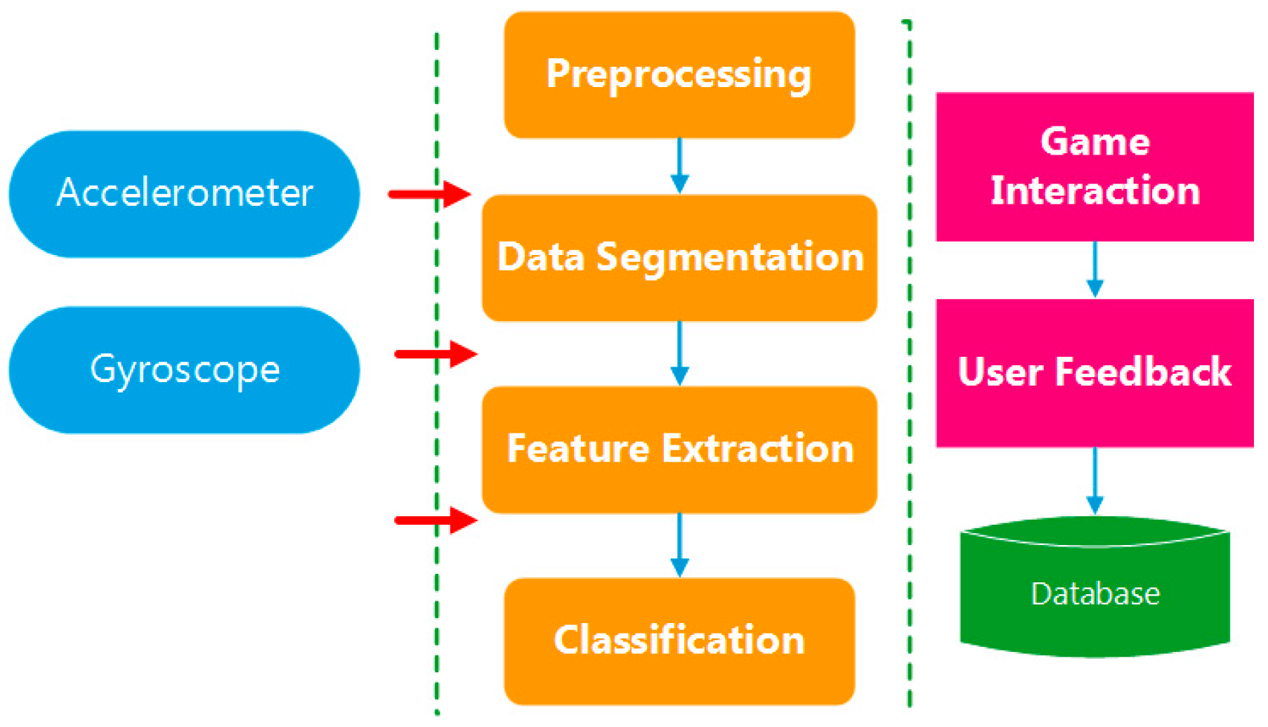 23]. These systems are merely data recorders or monitors, and their performance does not have a direct impact on the user experience because the user cannot identify whether the motion identification result is accurate or not.