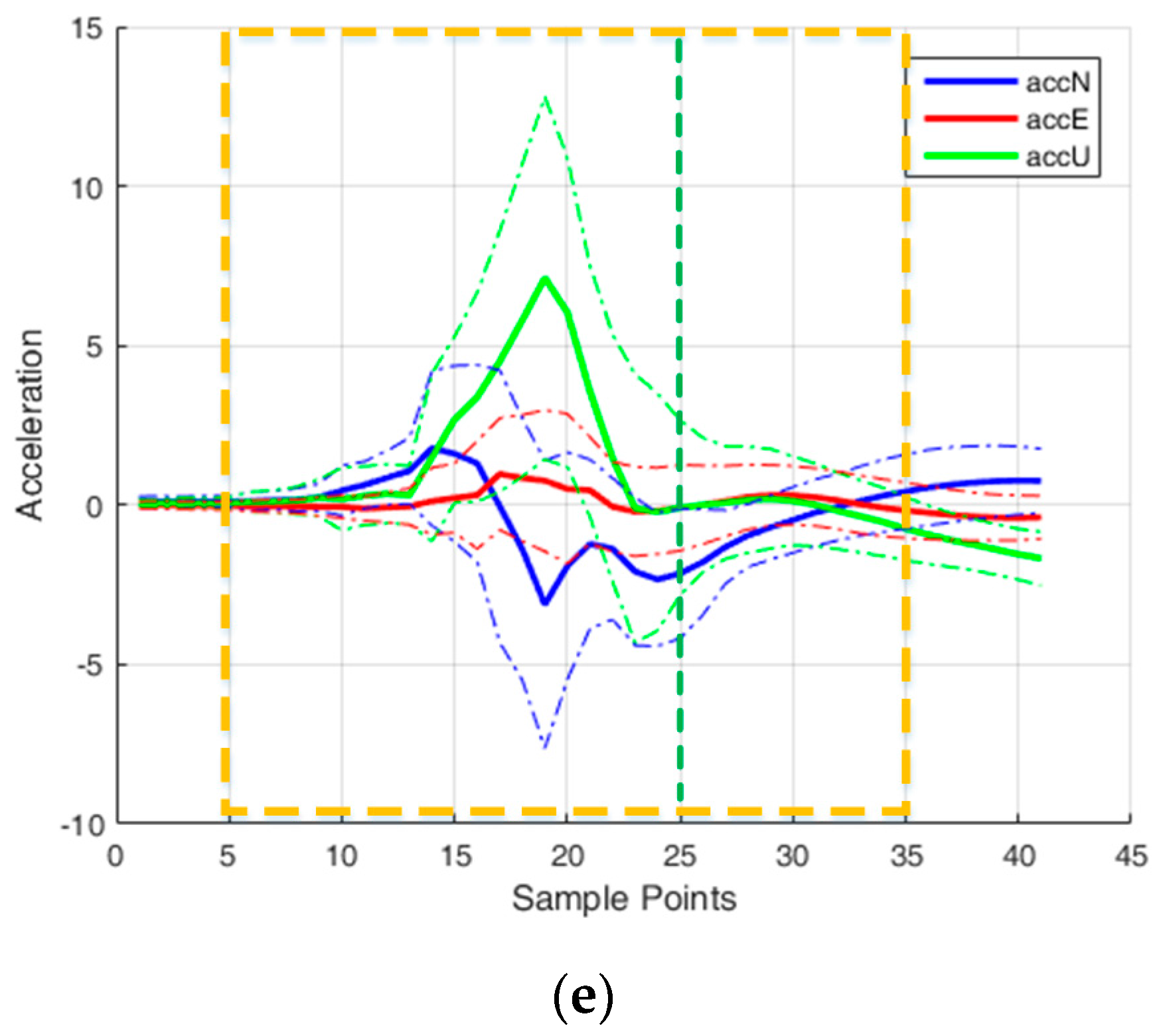 Hence, it is not feasible to calculate the position during the whole identification process, the position is only derived in the data segmentation, with an initial velocity (0,0,0), initial position (0,0,0), and a zero azimuth during the calculation process. The inertial sensor has the characteristic of keeping accurate in short term, so the position result computed in the 31 samples interval is reliable and trustworthy. The position calculation equation is described as follows: