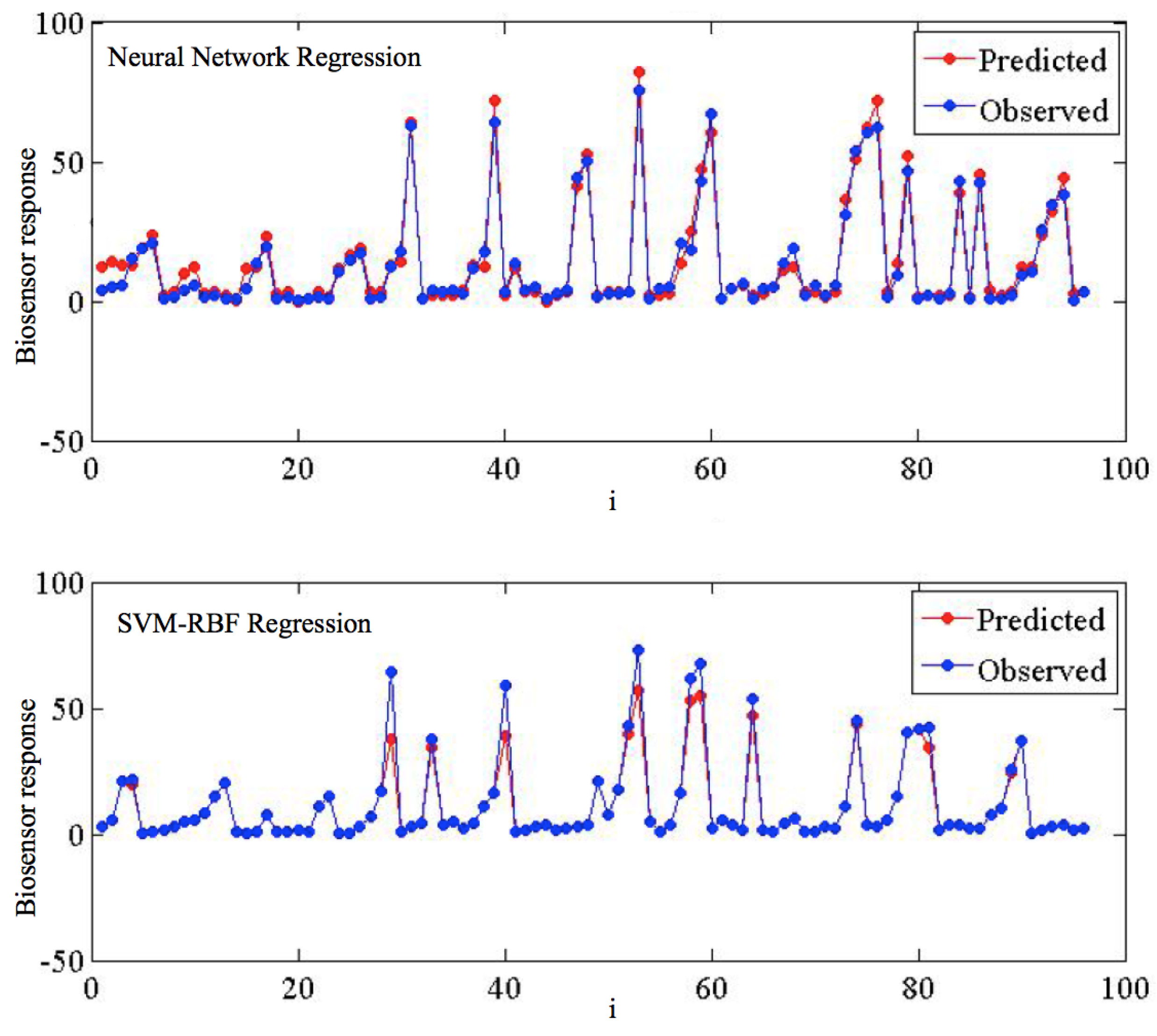 11] demonstrated the potential of the Artificial Neural Networks (ANN) approach to electrochemical biosensor response modeling. Another promising method for analyzing overlapped signals, which cannot be calibrated and modeled by linear expressions, seems to be that of Support Vector Machines (SVM), displaying in general comparable to or better performance than ANNs and other statistical models [