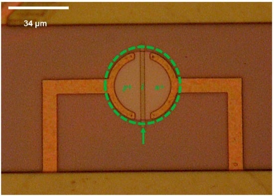 Micrograph of a single thermodiode used as a temperature sensor on the multi-sensor SOI CMOS MEMS chip.