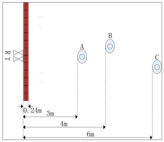 An experiment for detecting three targets was also performed. The distribution of targets A, B, and C is represented in Figure 7.