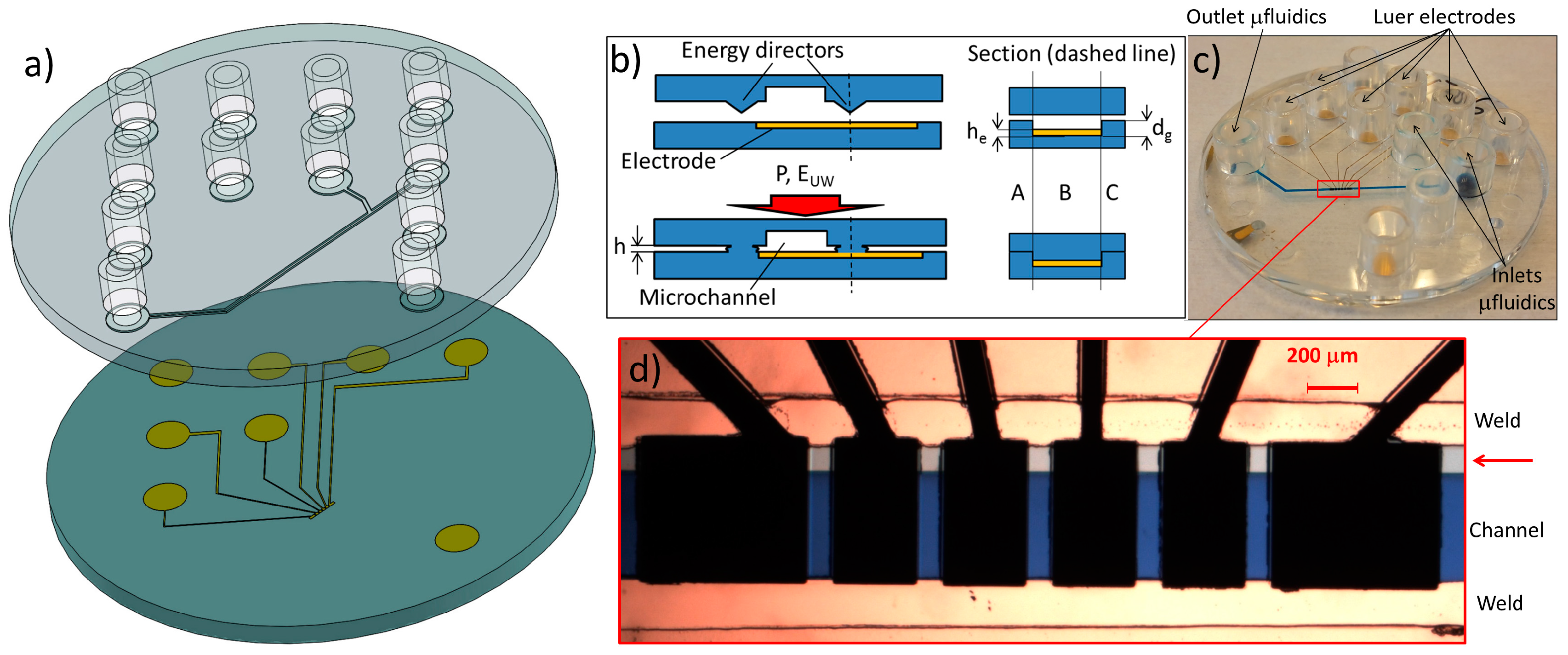 Chicago/Turabian StyleMatteucci, Marco, Arto Heiskanen, Kinga Zór, Jenny Emnéus, and Rafael Taboryski. 2016. "Comparison of Ultrasonic Welding and Thermal Bonding for the Integration of Thin Film Metal Electrodes in Injection Molded Polymeric Lab-on-Chip Systems for Electrochemistry" Sensors 16, no. 11: 1795. https://doi.org/10.3390/s16111795