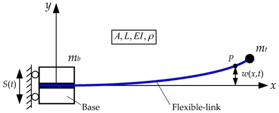 The system parameters of the TFM are set as follows: A, L, EI, and ρ are the sectional area, the length, the bending stiffness, and the density of the flexible-link manipulator, respectively. mb and S(t) represent the mass and displacement of the base, respectively. mt denotes the mass of the payload. ω(x, t) indicates the transverse vibration of the flexible-link manipulator. The derivative notations are defined as: and .